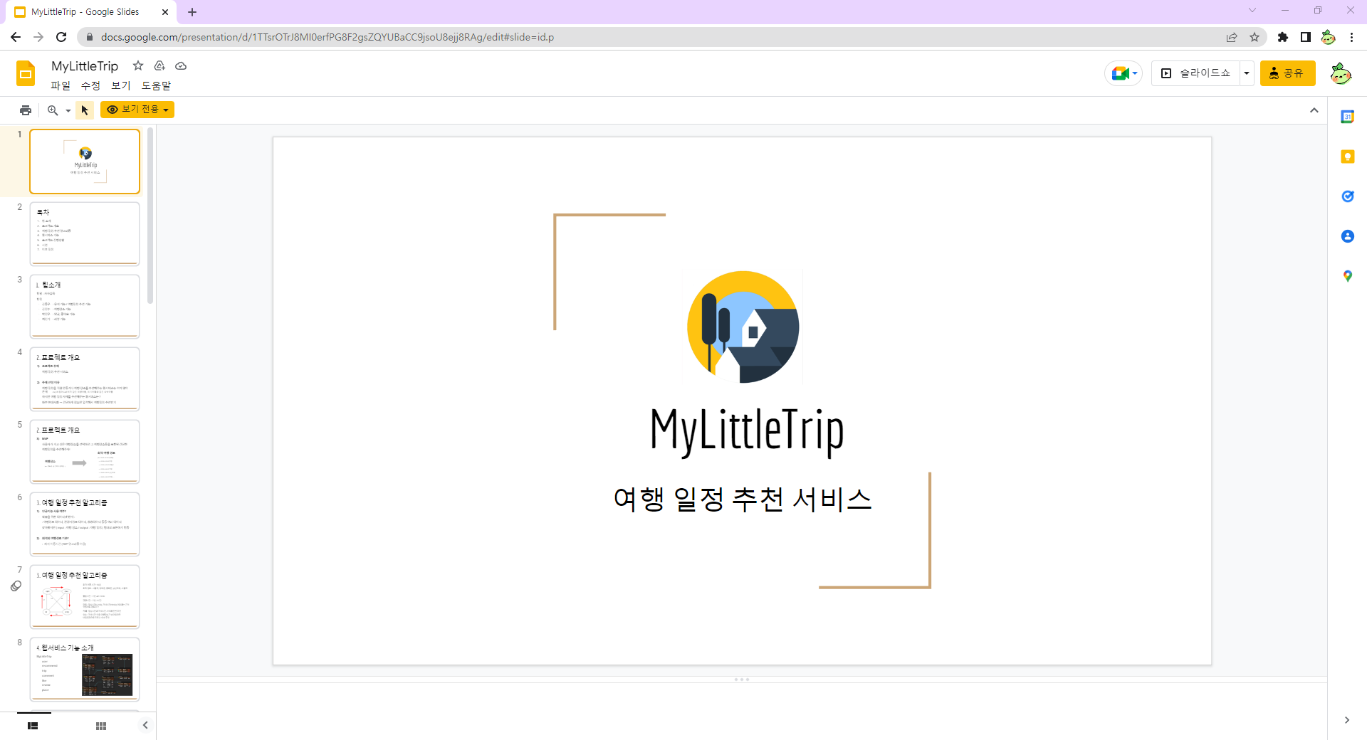 중간발표에 앞서 프로젝트 진행 상황까지의 정보가 담긴 PPT를 만들어주었습니다.