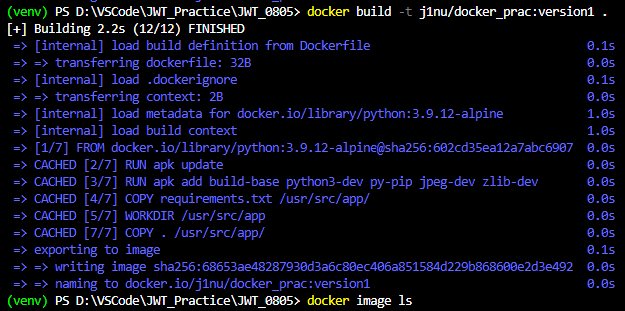 정상적으로 빌드가 되었다면 'docker image ls'를 사용하여 Docker Image가 생성되었는지 확인을 해보거나 Docker Desktop으로 확인을 해주었다.