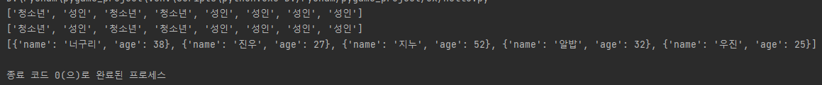 해당 map에서 다룬 함수의 형태를 lambda를 통해 (lambda x: ('성인' if x['age'] > 20 else '청소년'), people)과 같이 짧게 다루고, 똑같이 출력되는 것을 볼 수 있다.