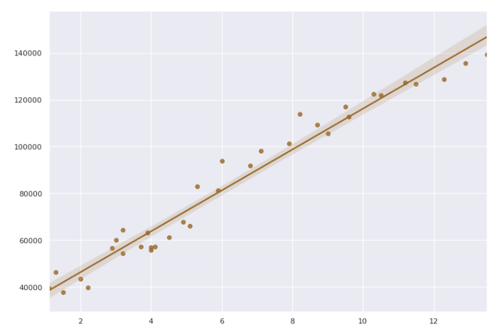 - x와 y의 관계를 나타내는 직선이 존재하고, 변수 사이의 선형 관계를 모델링한 것