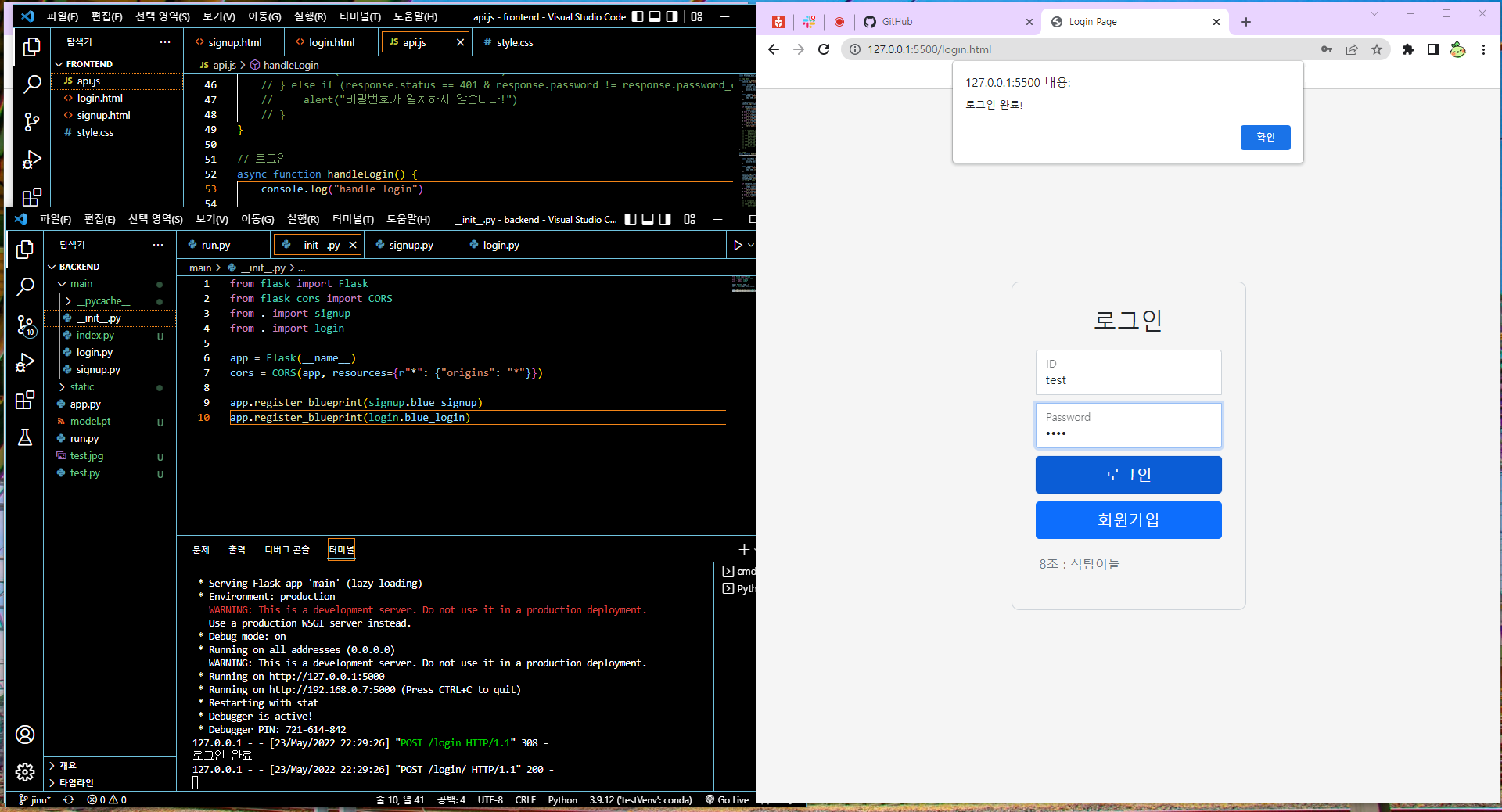 그렇게 머리를 싸매면서 회원가입 및 로그인 페이지도 완성하고 다른 팀원분들하고 서로 도와주며 프로젝트를 진행했습니다.