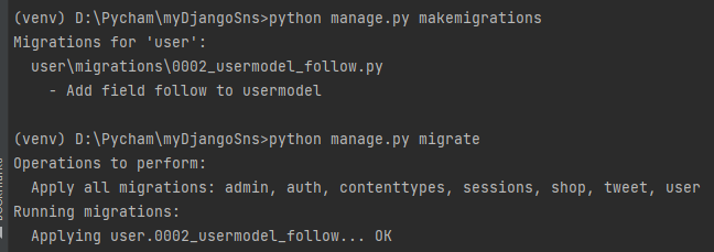 우선 user의 models.py에 follow를 추가해주기로 하였다.