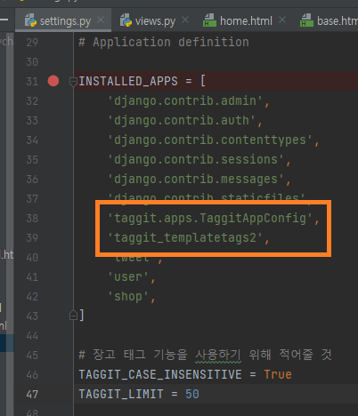 해당 views.py에 있는 class의 TagCloudTV와 TaggedObjectLV은 django-taggit 모듈에서 기본적으로 제공해주는 것이니 현재 상태로는 바꿔줄 필요가 없다.