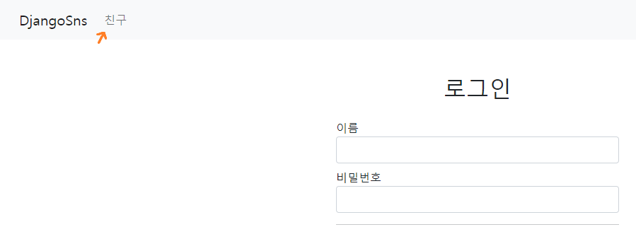 마지막으로 '친구'를 누르면 해당 팔로우 목록을 보여주는 html을 불러올 수 있도록 base.html의 '친구'를 <a> 태그로 변경해주고 팔로우 목록을 보여주는 user_list.html을 추가해주었다.