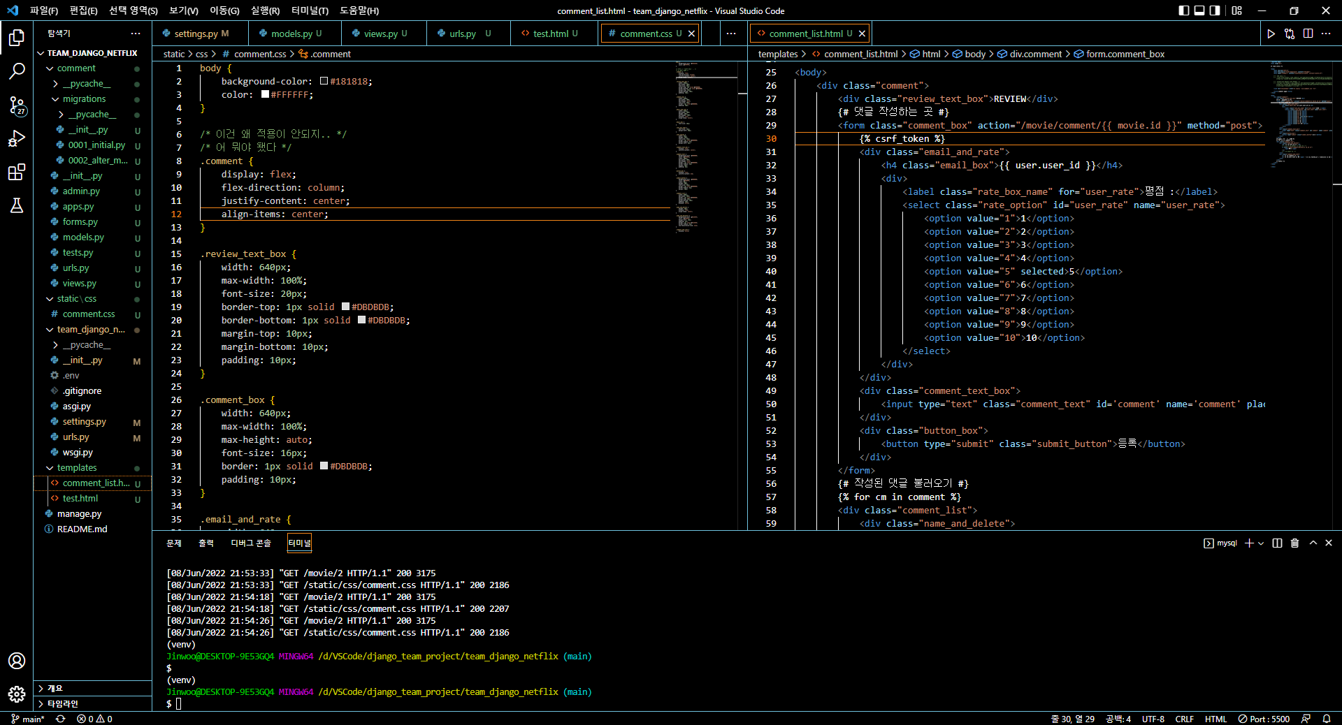 user앱과 movie앱에 있는 각 models.py에서 각 class들을 서로 import 하는 과정에서 오류가 일어났던 것이었다.