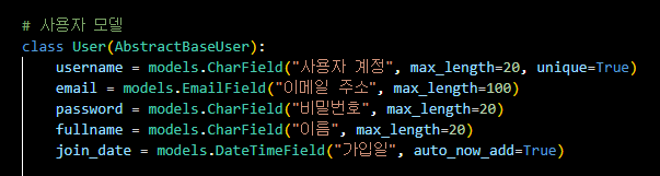 예시를 위해 user 앱의 models.py를 살펴보자.