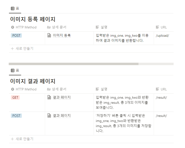 그리고 팀 프로젝트 노션 페이지에서 API 설계 또한 진행 중에 있었는데, 시간이 부족한 관계로 일부만 적어둔 뒤 오늘 설계를 마저 진행하도록 하였다.