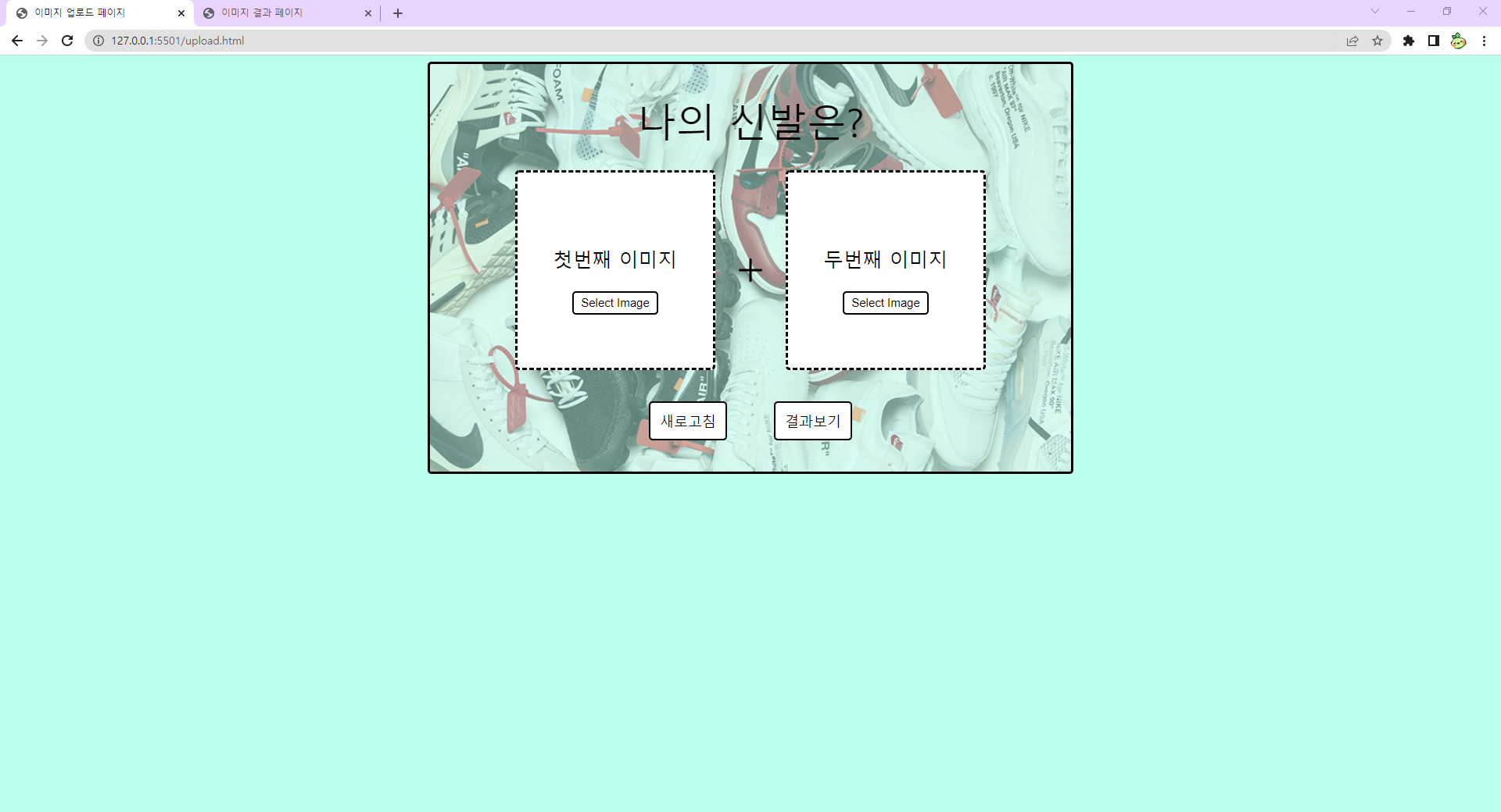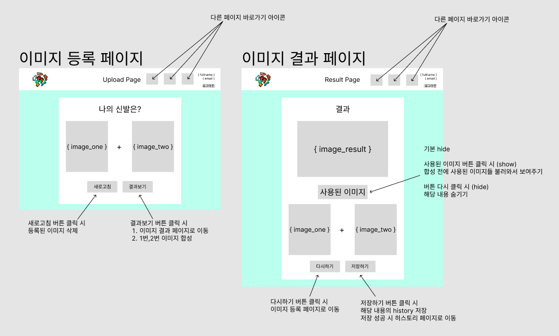 그리고 API를 건드리다가 고민으로 인해 조금씩 막힐 때마다 프로젝트 와이어프레임을 보면서 이미지 업로드/결과 페이지 Frontend html을 만들어보기로 하였다.