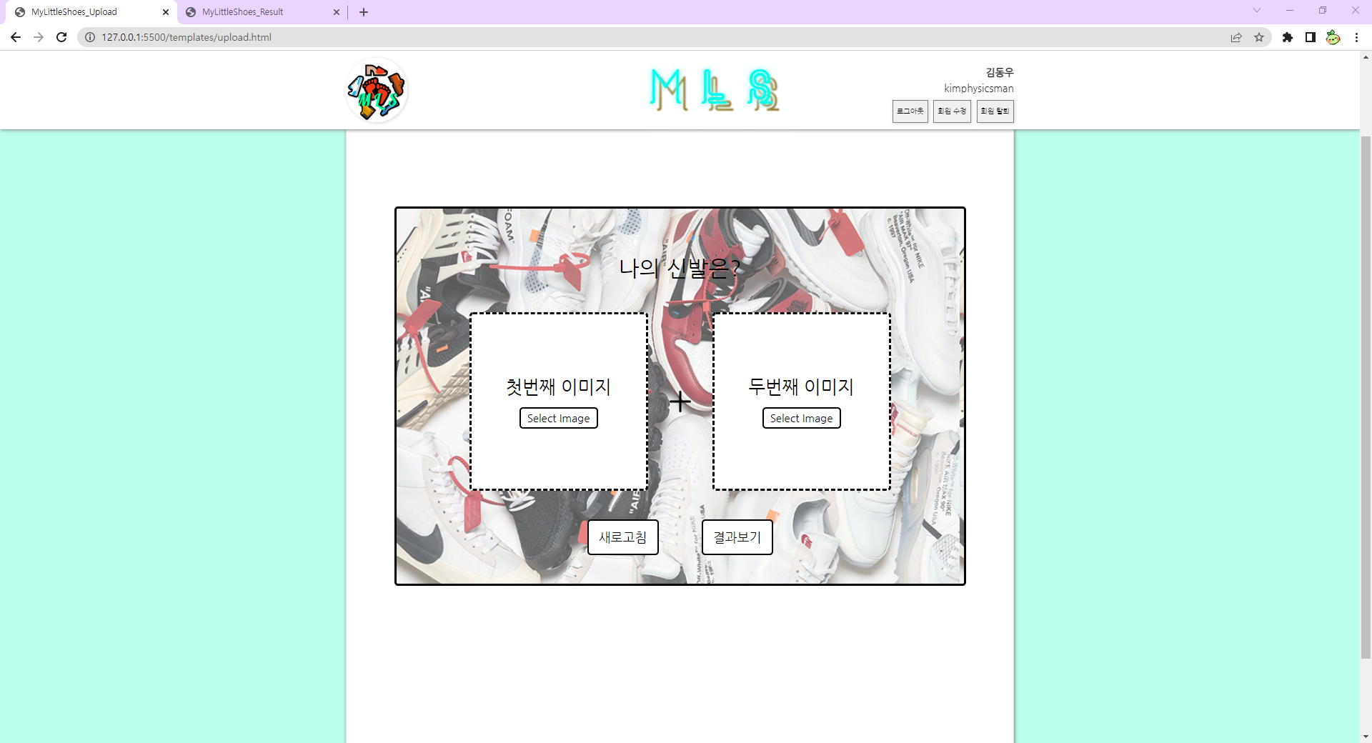 이미지 업로드 및 결과 페이지를 구성하는 역할을 맡았기 때문에 해당 부분에 대한 UI를 만들어주었다.